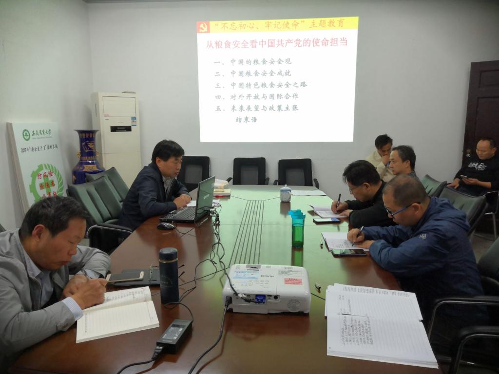党支部书记汪勇作题为“从粮食安全看中国共产党的使命担当”的形势政策报告。报告从中国的粮食安全观、中国粮食安全成就等五个方面分析中国粮食安全形势,中国粮食安全对中国和国际的和平与发展的意义,阐述在中国共产党领导下解决中国13亿人口的粮食安全之路的历程。