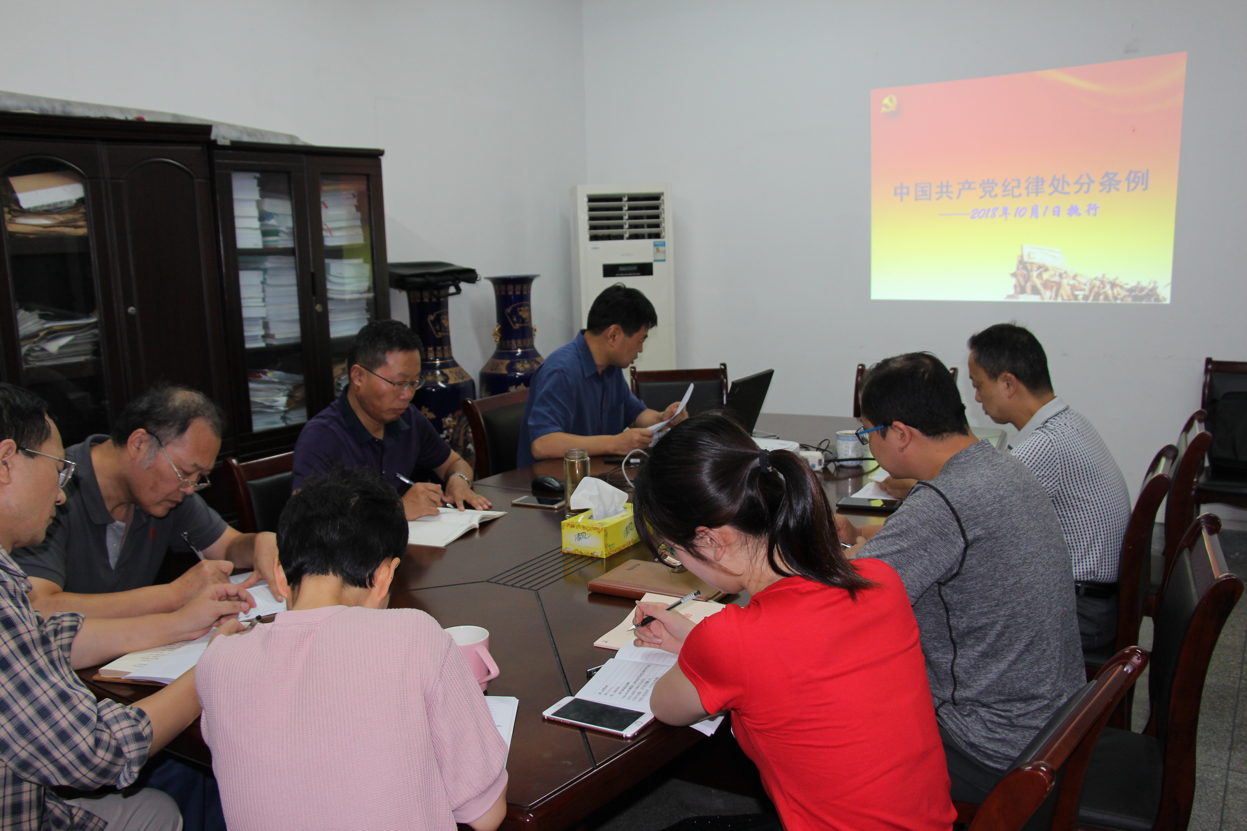 9月12日下午,国资处党支部组织上党课活动,党支部书记汪勇解读了新修订的《中国共产党纪律处分条例》。