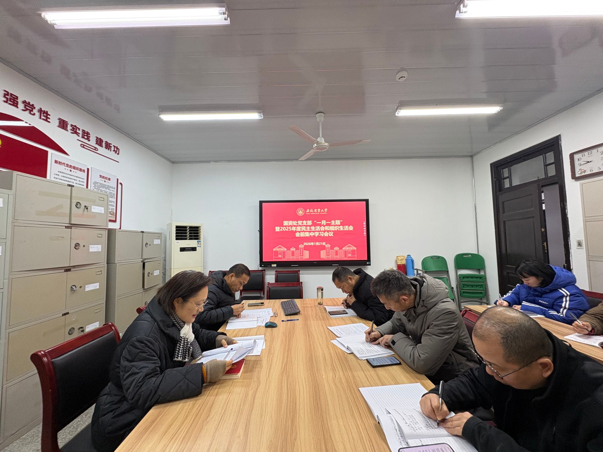 1月21日上午,国资处党支部在党员活动室召开“一月一主题”暨2025年度民主生活会和组织生活会会前集中学习。会议由党支部书记孙伟主持,全体党员参加。