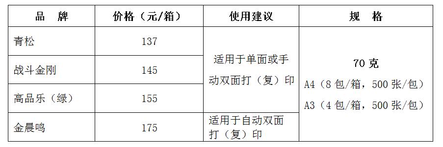 附:2020年打印(复印)纸品牌、价格信息