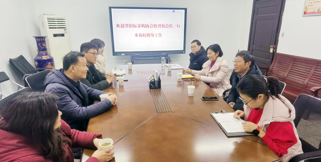 2月11日上午,安徽省招标采购协会殷君伯会长一行四人踏着寒雪来到我校指导工作,并就做好协会工作、高校采购专委会的工作进行了探讨。