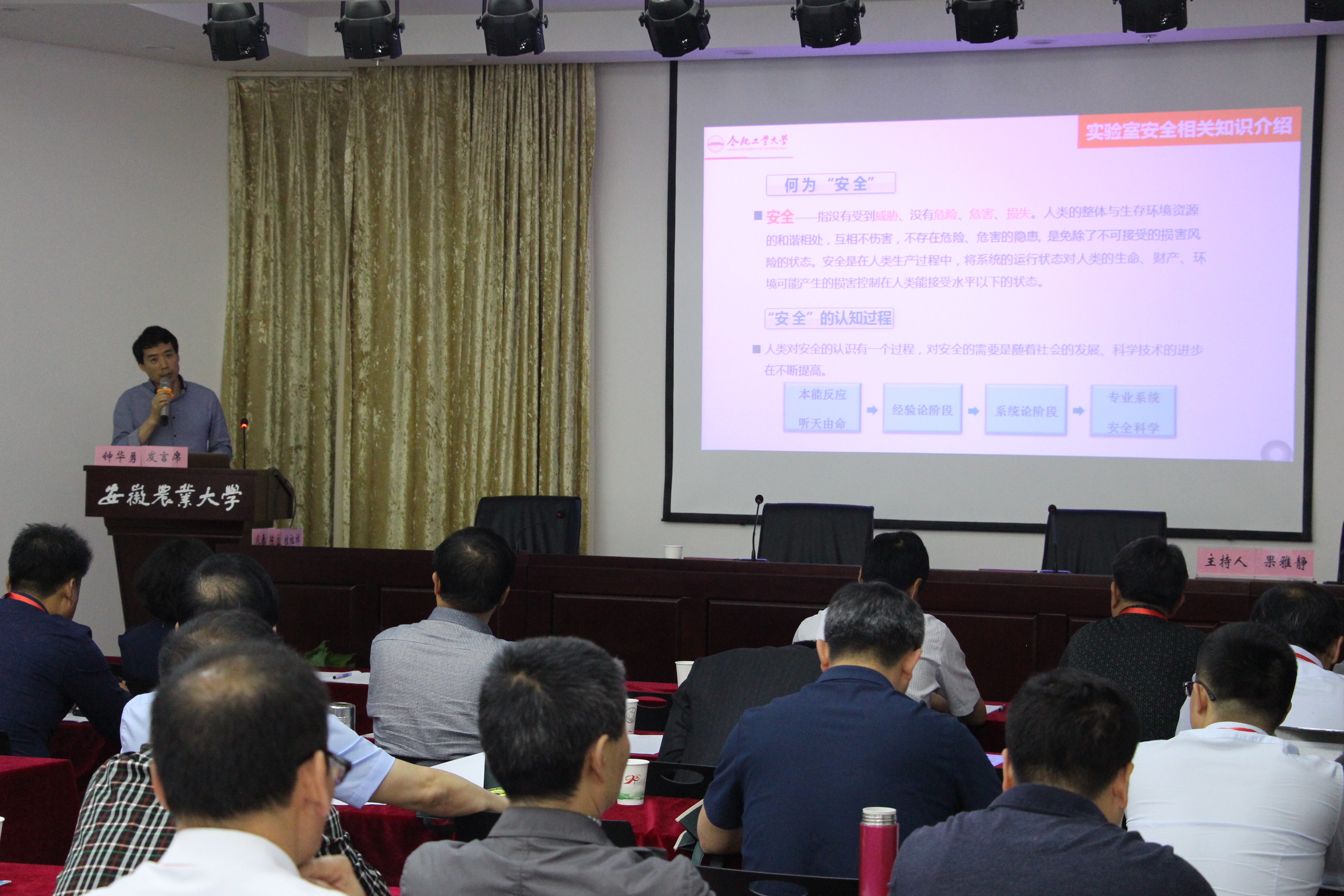农业高校分会秘书长、华中农业大学国资设备管理处处长袁友亮向理事会报告了分会2018年工作开展情况和2019年分会工作计划。会议特邀合肥工业大学实验室安全管理中心主任钟华勇作了题为《与安全同行,抓好实验室安全工作》的主题报告。来自南京林业大学实验室与基地建设管理处处长农春仕、东北林业大学实验室与设备管理处副处长陈立君、安徽农业大学国有资产管理处处长桂祖祥分别就实验室安全管理、虚拟仿真实验教学、实验室信息化建设和国有资产安全管理等工作作了专题报告。
