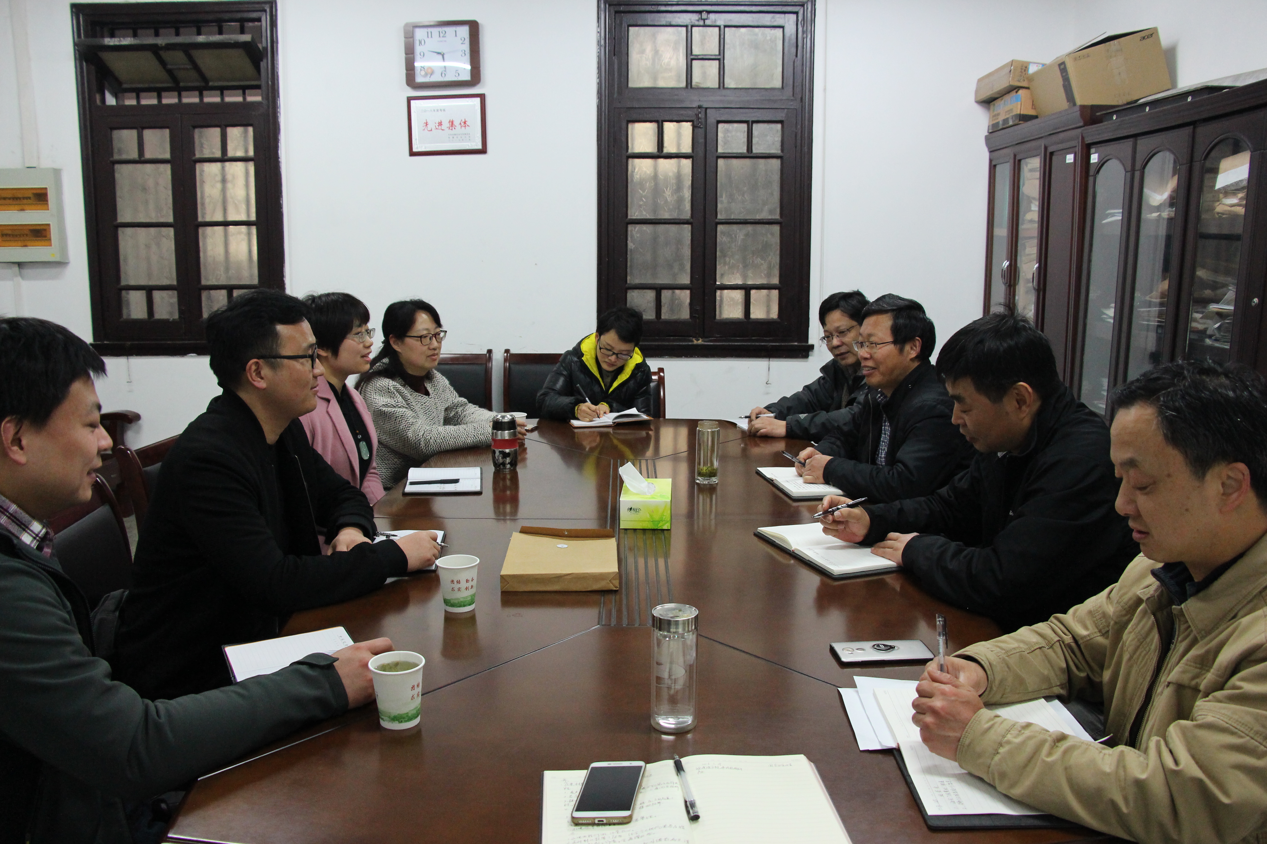 桂祖祥对皖南医学院的来访交流表示欢迎,并就我校国有资产管理处机构设置、工作职责、制度建设,固定资产全生命周期的信息化管理工作作了详细介绍。汪勇就产业管理、设备维修管理作了交流。在交流会上,双方还就固定资产实名制、资产报废处置、零星采购、废弃物处置、低值易耗品采购管理等进行了探讨和交流。