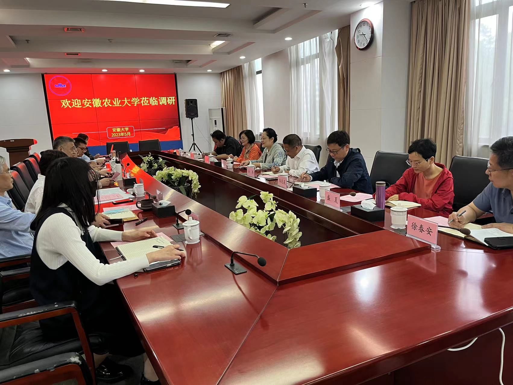 钱家盛代表安徽大学对李红一行的到来表示欢迎,介绍了安徽大学的发展历史和发展现状。李红对安徽大学的接待表示了感谢,介绍了安徽农业大学的基本情况并表达了此行的目的。