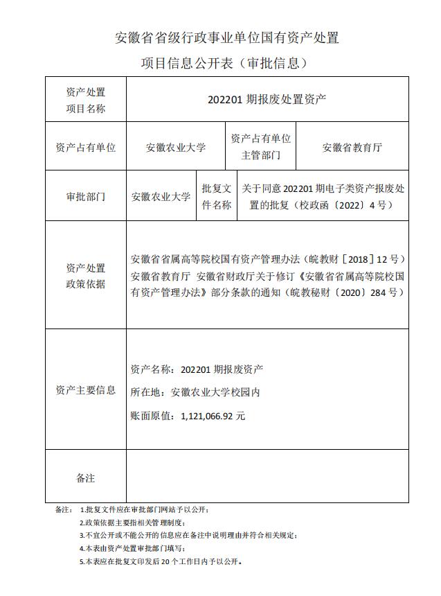 国有资产处置项目(202201期)审批信息公开