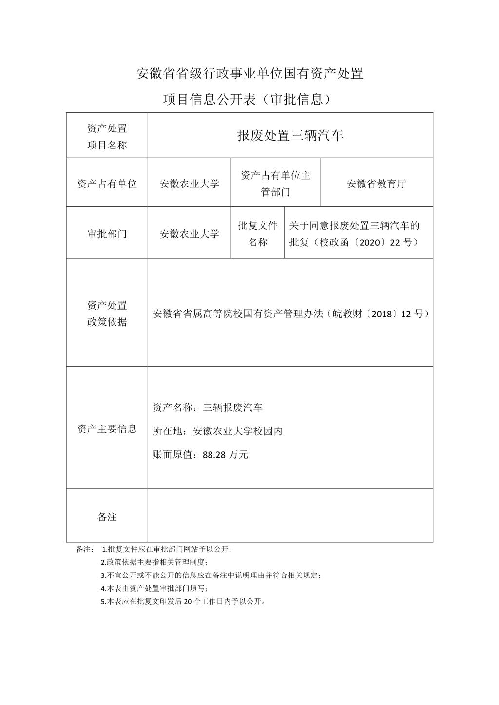 国有资产(三辆报废汽车)处置项目审批信息公开