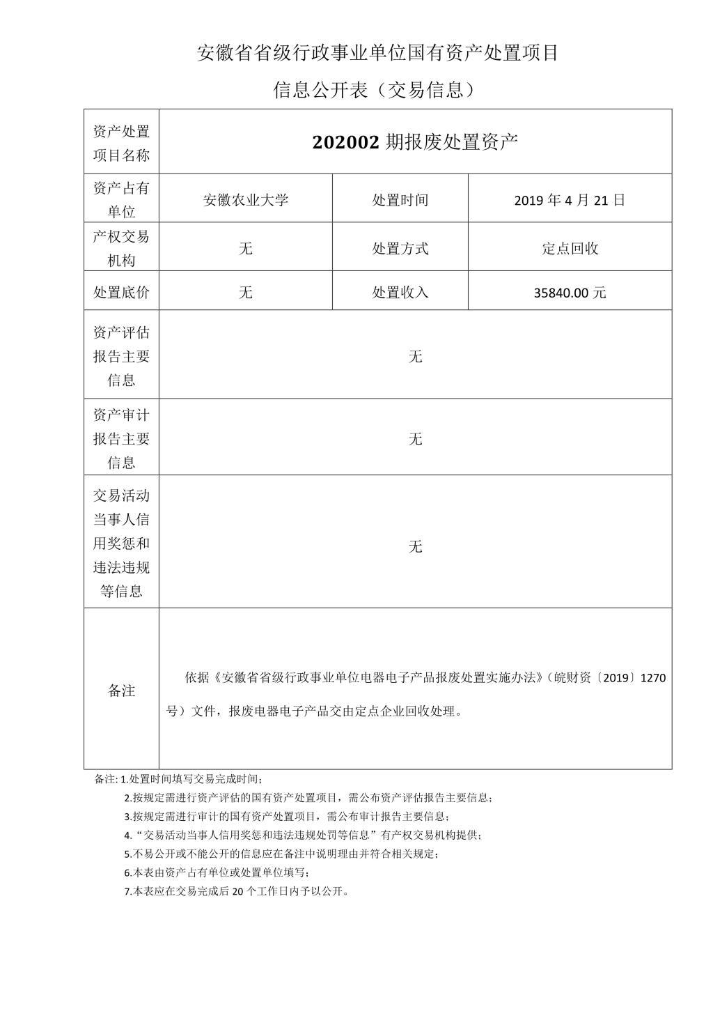 国有资产处置项目(202002期)交易信息公开