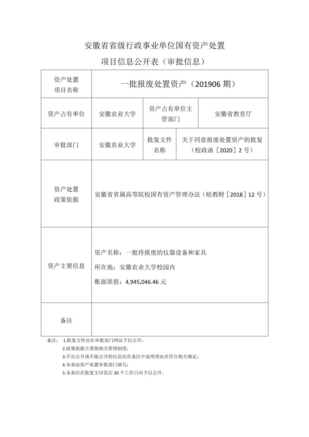 国有资产(201906期)处置项目审批信息公开