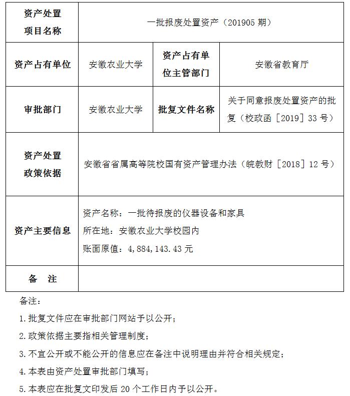 国有资产(201905期)处置项目审批信息公开